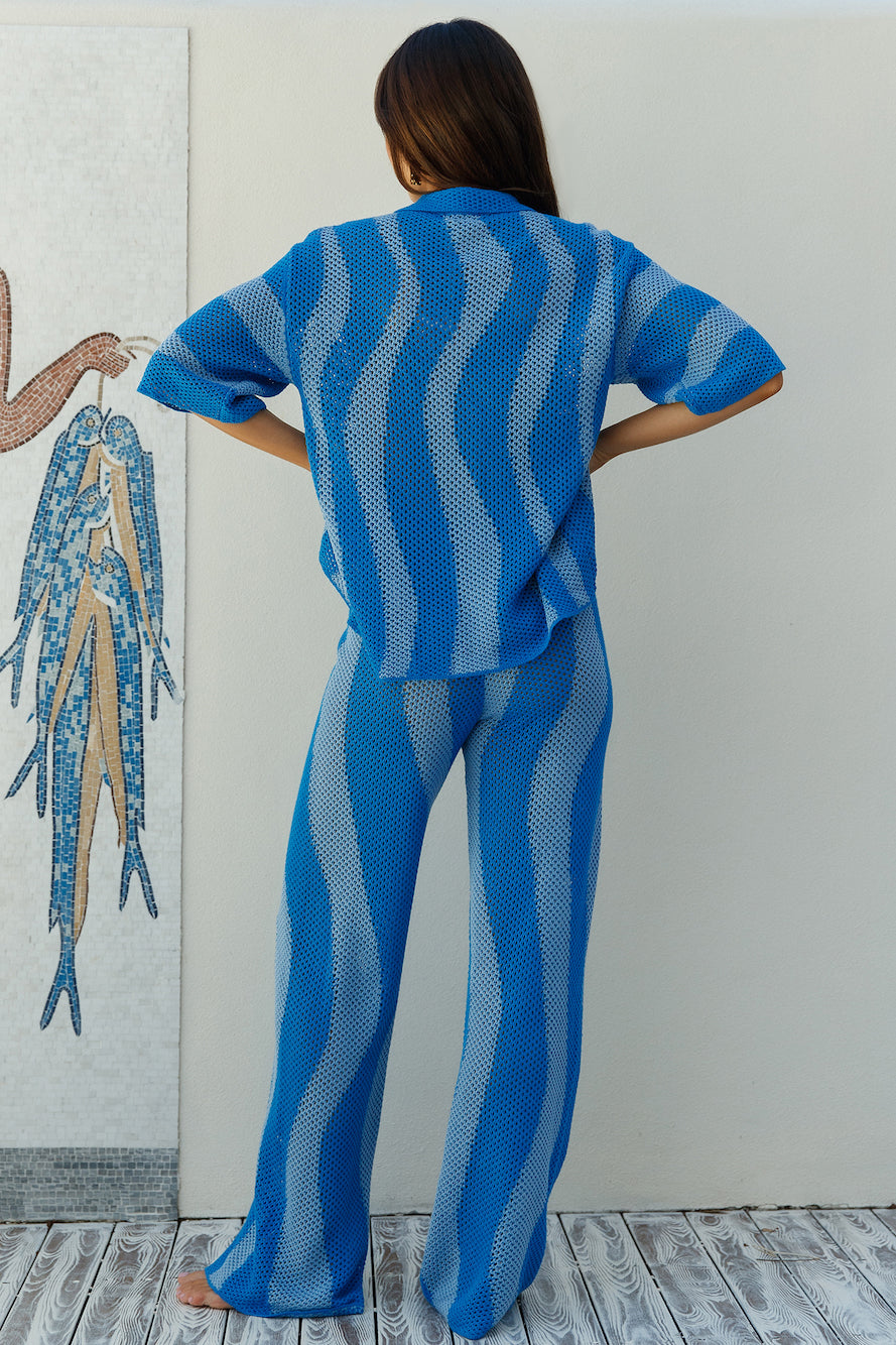 The SEVEN WONDERS Zanzibar Top in Blue is sure to be a new staple in your summer wardrobe. This crochet shirt is perfect as a bikini cover-up or matched with the SEVEN WONDERS Zanzibar Pants in Blue.